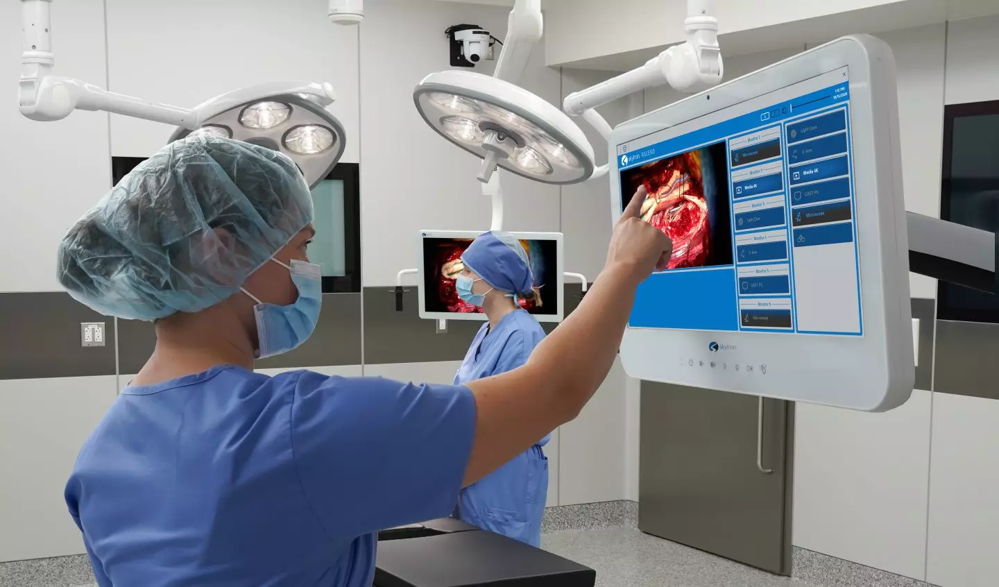 When we developed our line of entire SkyVision video integration systems, consisting of three options ranging from the simple solution above to your most complex hybrid OR, we had you in mind. We came to your facilities and performed multiple usability studies taking insights from clinical teams and surgeons to develop systems that ease the burden in your cases. For example, a nurse circulator will work in multiple rooms, with varying case specialties and multiple equipment manufacturers, depending on surgeon preference and what specific cases call for. Whether it be Robotics, Open Heart, General, Neuro, or Ortho-a single system is needed to make sure every device is working seamlessly together so that teams can have a user-friendly approach that optimizes workflow and works for you, not against you.